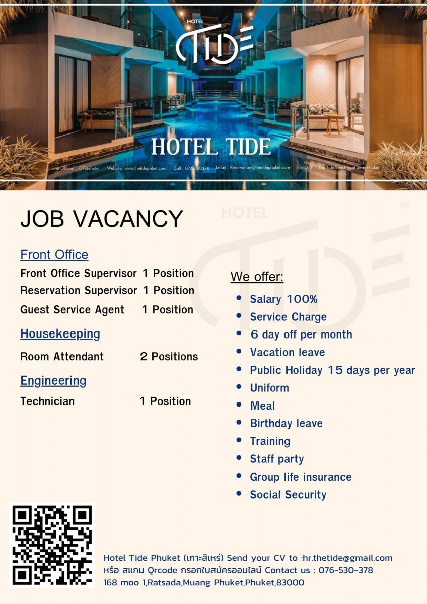 Hotel Tide รับสมัครตำแหน่งงานว่าง
