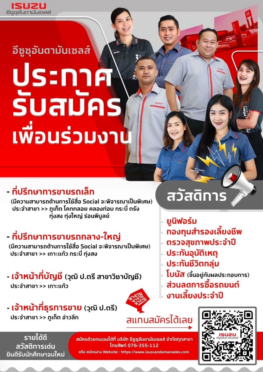 อีซูซุอันดามันเซลส์ (บริษัทในเครือตรีเพชรกรุ๊ป) รับสมัครงาน