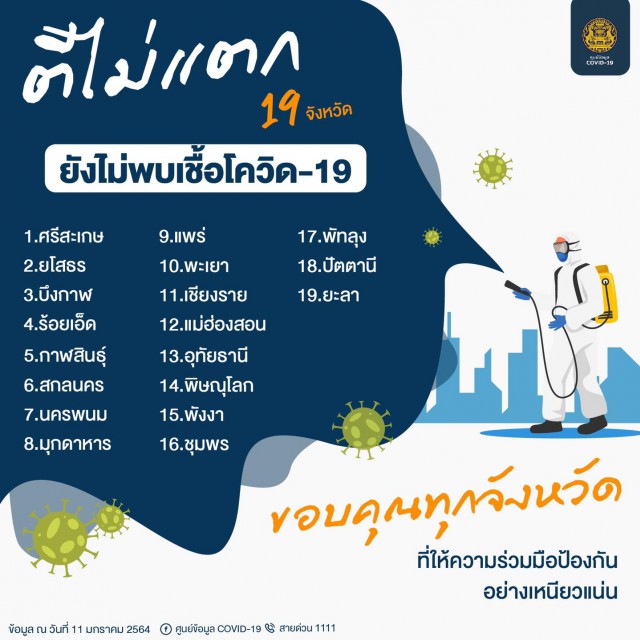 19 จังหวัด ยังไม่พบเชื้อ covid-19