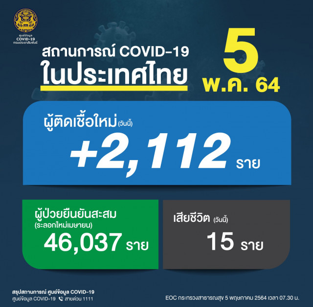 ยอดผู้ติดเชื้อโควิด-19 ณ วันพุธที่ 5 พฤษภาคม 2564