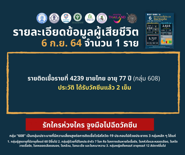 ? รายติดเชื้อรายที่ 4239 ชายไทย อายุ 77 ปี (กลุ่ม 608)