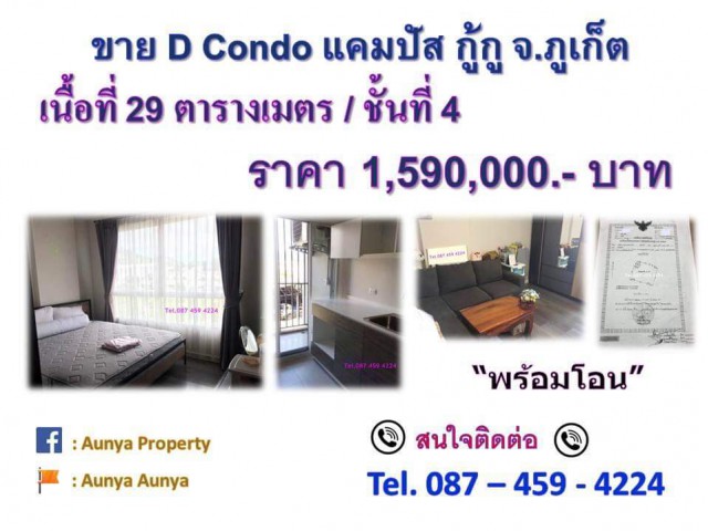 ขาย D Condo แคมปัส รีสอร์ท กู้กู ภูเก็ต Tel.087 459 4224