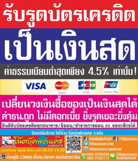 รับรูดบัตรเครดิต เป็นเงินสด จ.ตรัง รับเงินสดทันที ไม่จำกัดวงเงิน