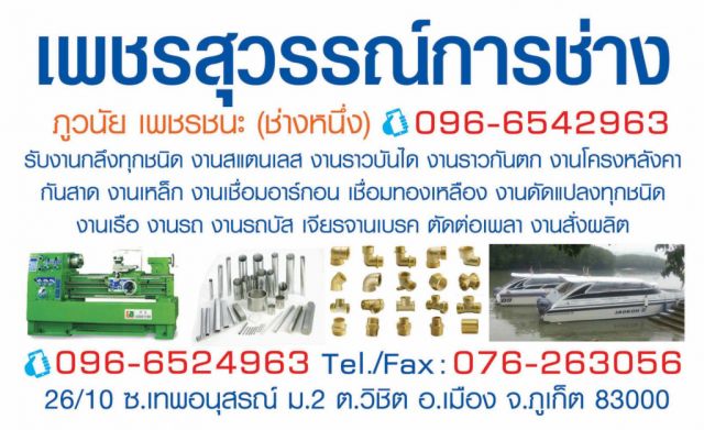 รับงานกลึงทุกชนิด งานสแตนเลส เจียรจานเบรค งานตัดต่อเพลากลาง งานราวบันได ราวกันตก งานเชื่อมอาร์กอน เชื่อมทองเหลือง งานรถ งานเรือ งานเรือหางยาว ติดต่อช่างหนึ่ง096-6524963 ,096-6542963 แฟ็ก076-375688