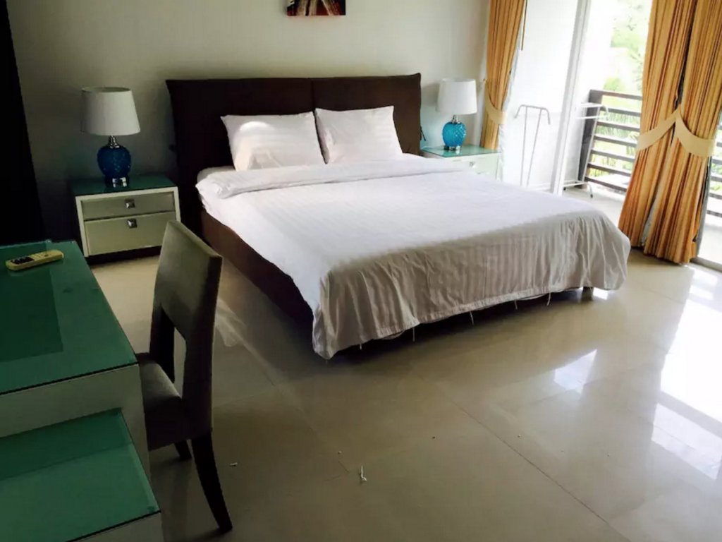 ห้องนอน 4 ห้องนอนมีเตียงคิงไซส์และควีนไซส์ขนาดใหญ่ เครื่องปรับอากาศห้องนั่งเล่นมีทีวีแอลซีดีขนาดใหญ่ 50 นิ้วและระบบโฮมเธียเตอร์และห้องครัวที่มีอุปกรณ์ครบครัน