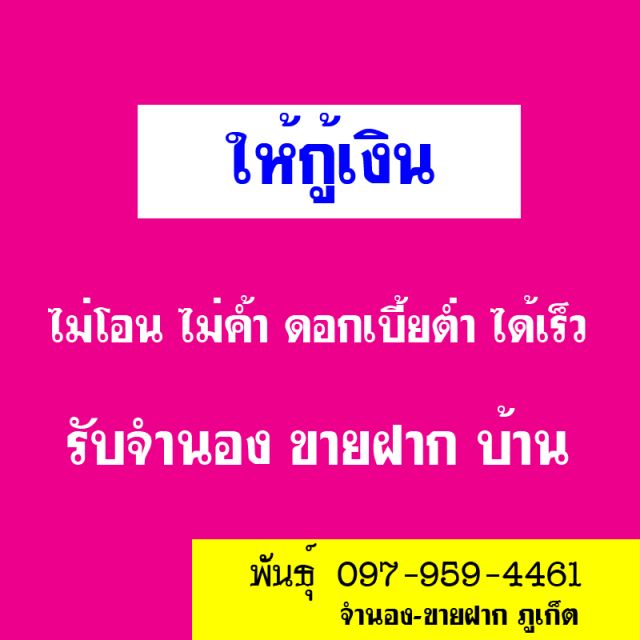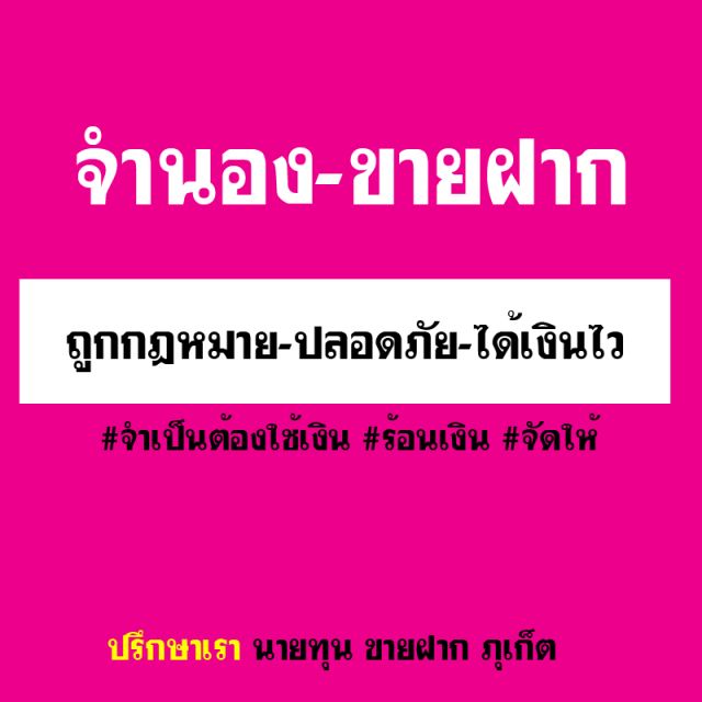รับขายฝาก บ้าน คอนโด ที่ดิน ในจังหวัดภูเก็ต ยินดีให้คำปรึกษาฟรี โทร. 097-959-4461