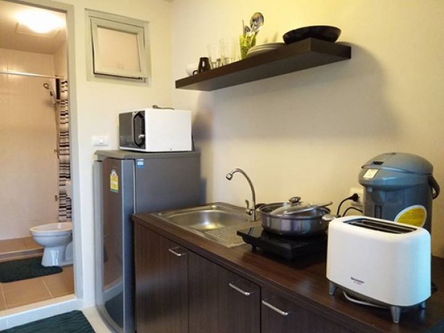 6A111881ให้เช่าคอนโดย่านเศรษฐกิจ วิวสระ พื้นที่ 30 ตรม. เฟอร์นิเจอร์ครบครัน