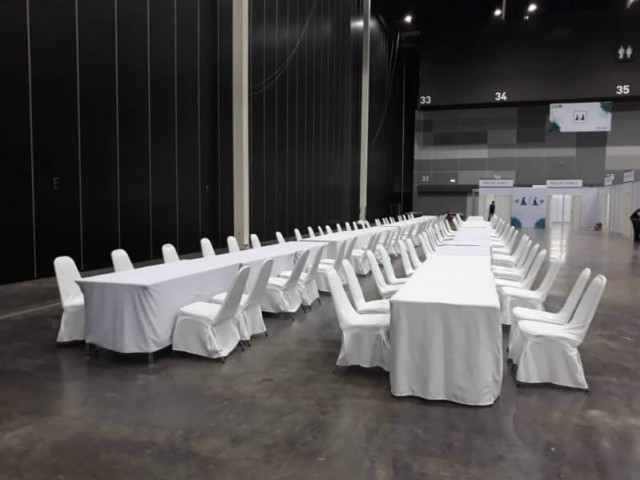- ให้บริการเช่าโต๊ะเหลี่ยมพร้อมคลุมผ้าสีขาว