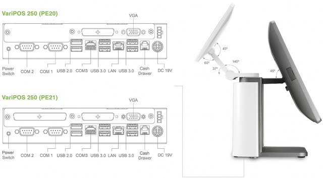 เครื่อง POS VariPOS 250-Celeron G3900TE หน้าจอ LCD ขนาด 15 นิ้ว 15 PCAP Q170 4G RAM HDD SSD 64G SSD Win10 2016, Win8.1, Win7 POS Ready 7