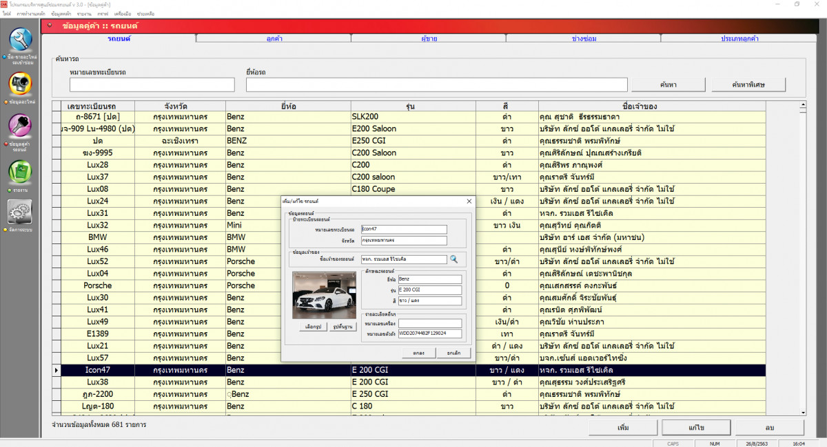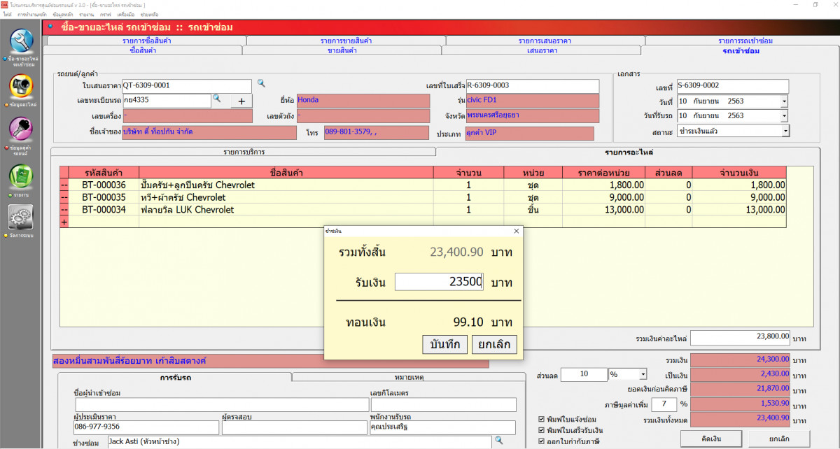 โปรแกรมศูนย์ซ่อมรถ ศูนย์บริการ อู่ซ่อมรถยนต์ คาร์แคร์ Car Service 3.0 Excellent