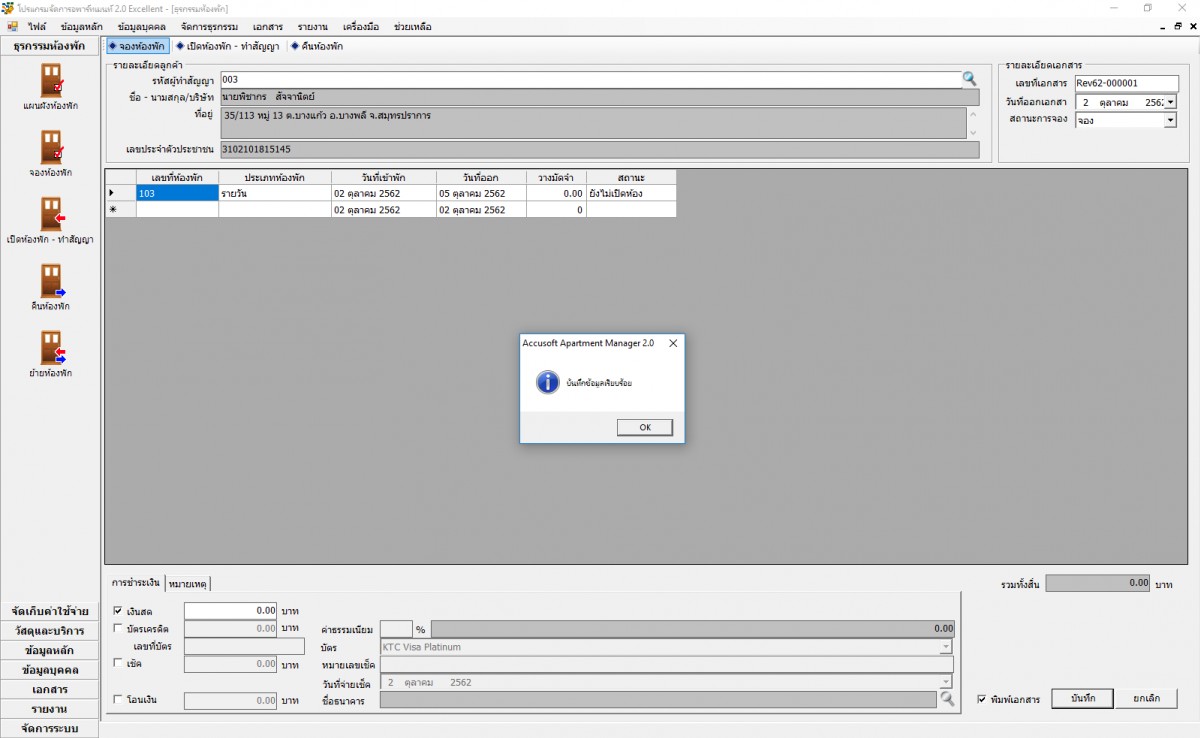 โปรแกรมจัดการอพาร์ทเมนท์ 2.0 Standard Accusoft Apartment Management โปรแกรมจัดการหอพัก โปรแกรมจัดการห้องเช่า โปรแกรมจัดเก็บค่าเช่าแผง