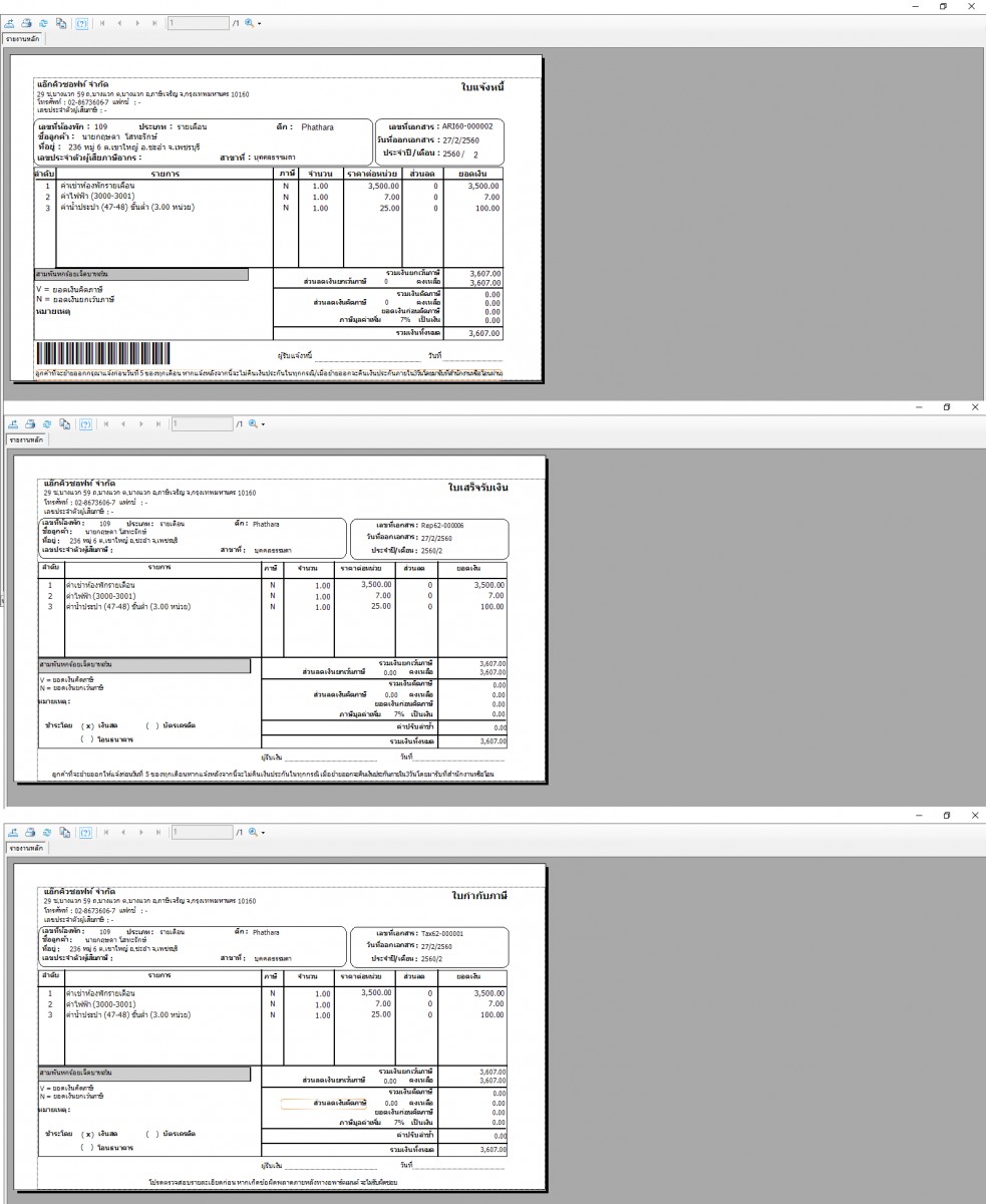 - สามารถทำรายการใบแจ้งหนี้ และออกเอกสารใบแจ้งหนี้ได้