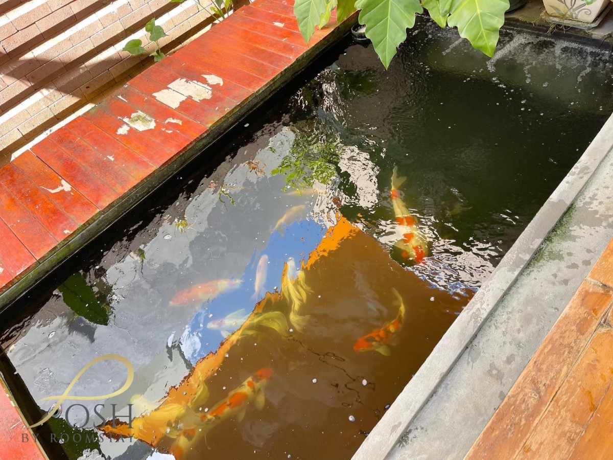 Sitting area next to the house with *koi pond (fish ponds cleaning and fish food taken care by the homeowner)