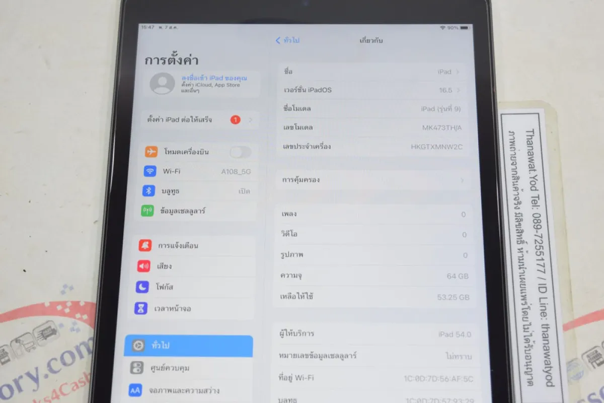 ขายด่วน iPad Gen 9 64GB Wifi+Cellular ใส่ซิม ครบกล่อง เหมือนใหม่ แบต90%